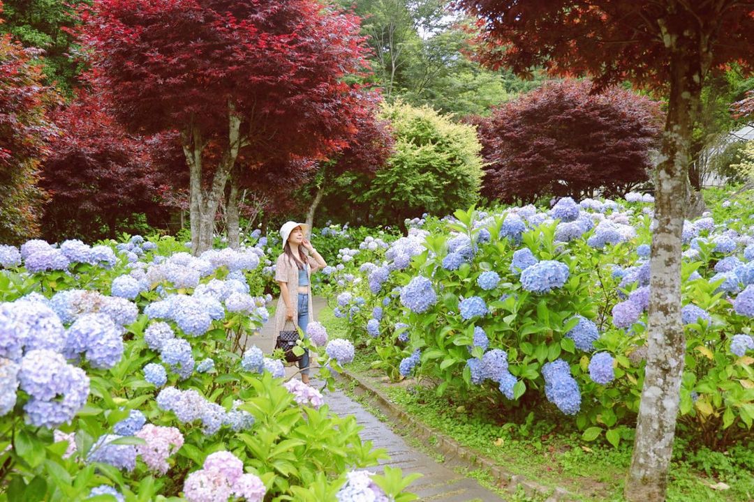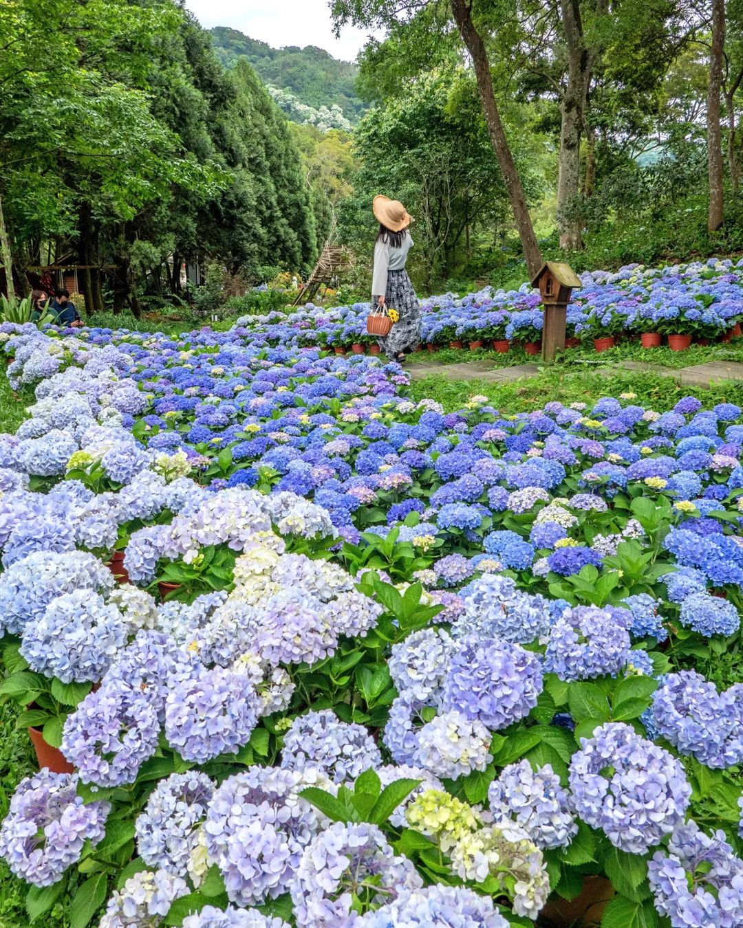中南部的朋友別氣餒!不跑陽明山也能賞到絕美的繡球花海,位在南投竹山的杉林溪森林生態渡假園區,一年四季皆有不同的賞花季,櫻花、牡丹、繡球花、楓葉等,漫步在清幽的森林步道,欣賞瀑布及神木,四周處處花開,山上氣候涼爽宜人,與大自然同遊之時還是避暑的聖地。