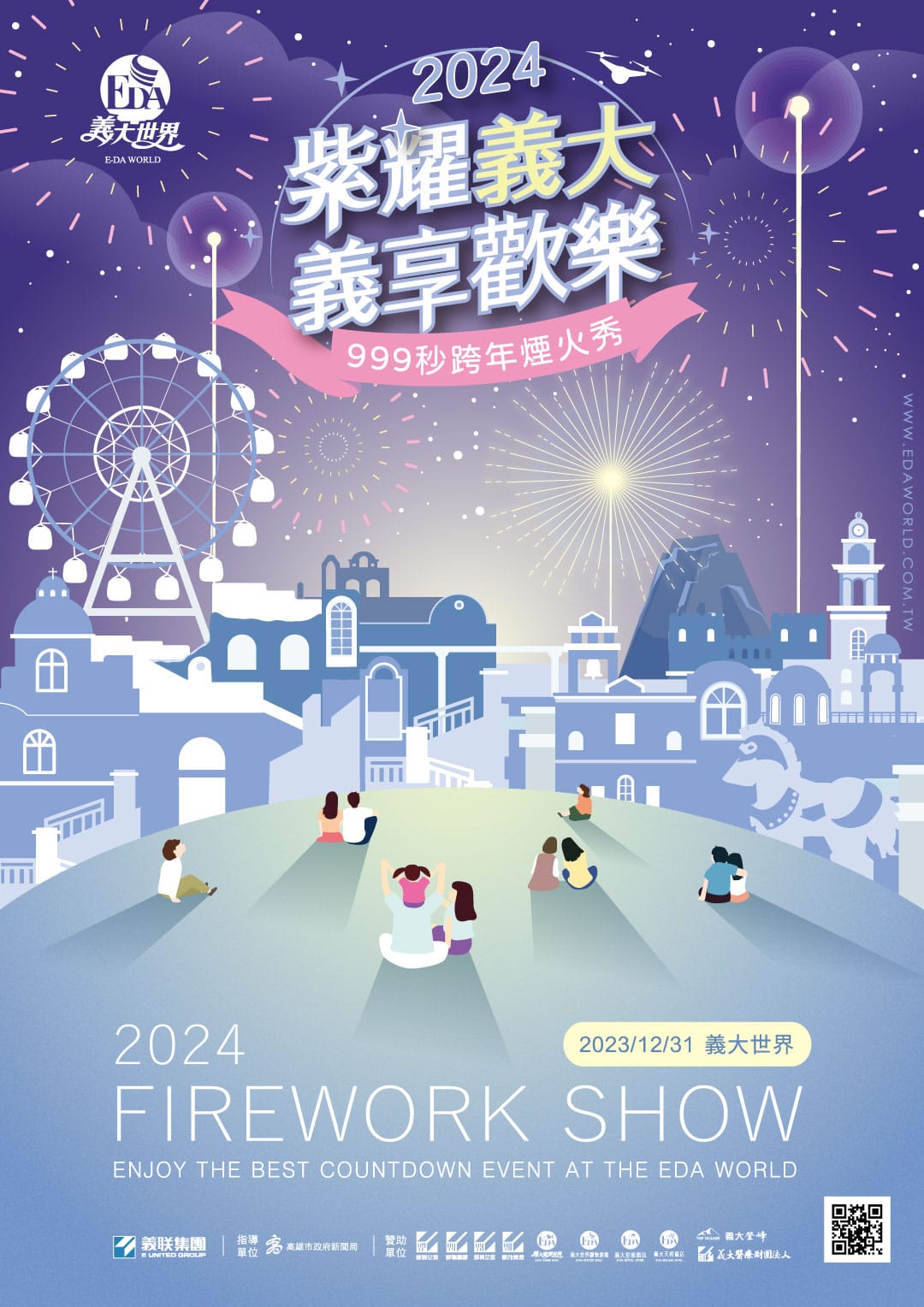 義大世界將在12月31日舉辦「紫耀義大 義享歡樂」的跨年煙火秀,為您奉上一場視聽覺盛宴!這場豪華的煙火秀將於2024年的第一刻,施放長達999秒的大型藝術煙火,以令人矚目的「巨型飛字煙火」震撼開場。大面寬的煙火將在義大世界大草坪上空綻放,分為四大篇章:魔幻、浪漫、希望、感動,迎接充滿能量的全新一年。